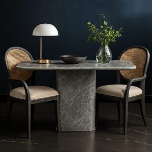 The Louis dining table is where stories unfold. Its bold silhouette and timeless finish make it the anchor of modern dining rooms. Paired with Louis dining chairs, upholstered in soft neutral tones, the set creates a dining space that feels both elegant and welcoming — perfect for UK households searching for modern dining sets UK.