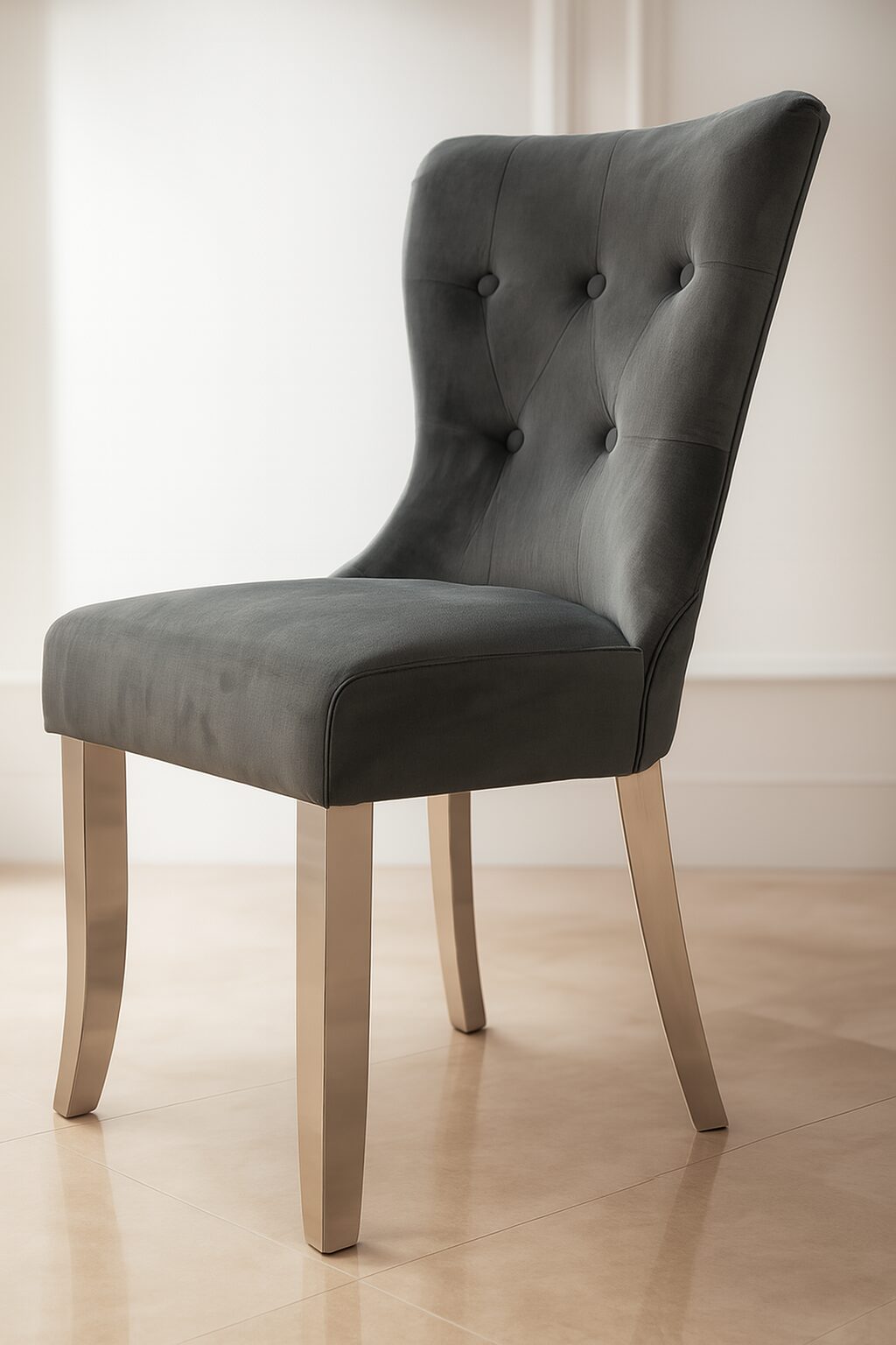 Add a touch of modern elegance to your space with the Bentley Dark Grey Chair. Featuring sleek chrome legs and a rich dark grey upholstered seat, this chair offers a perfect balance of contemporary style and everyday comfort.