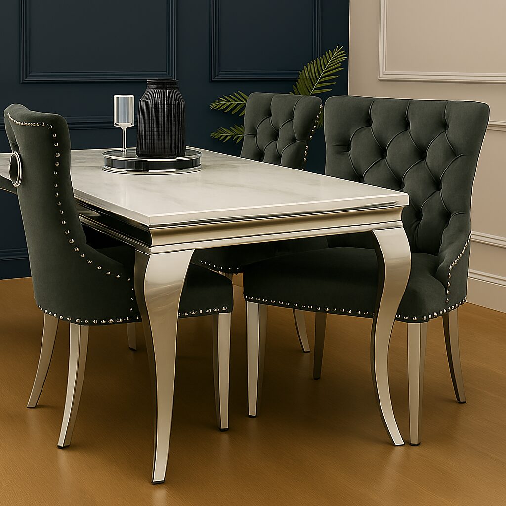Each chair features a soft upholstered seat and supportive backrest, set on sturdy metal legs with a clean, contemporary finish. Designed for everyday use, they offer a practical seating solution without compromising on style.