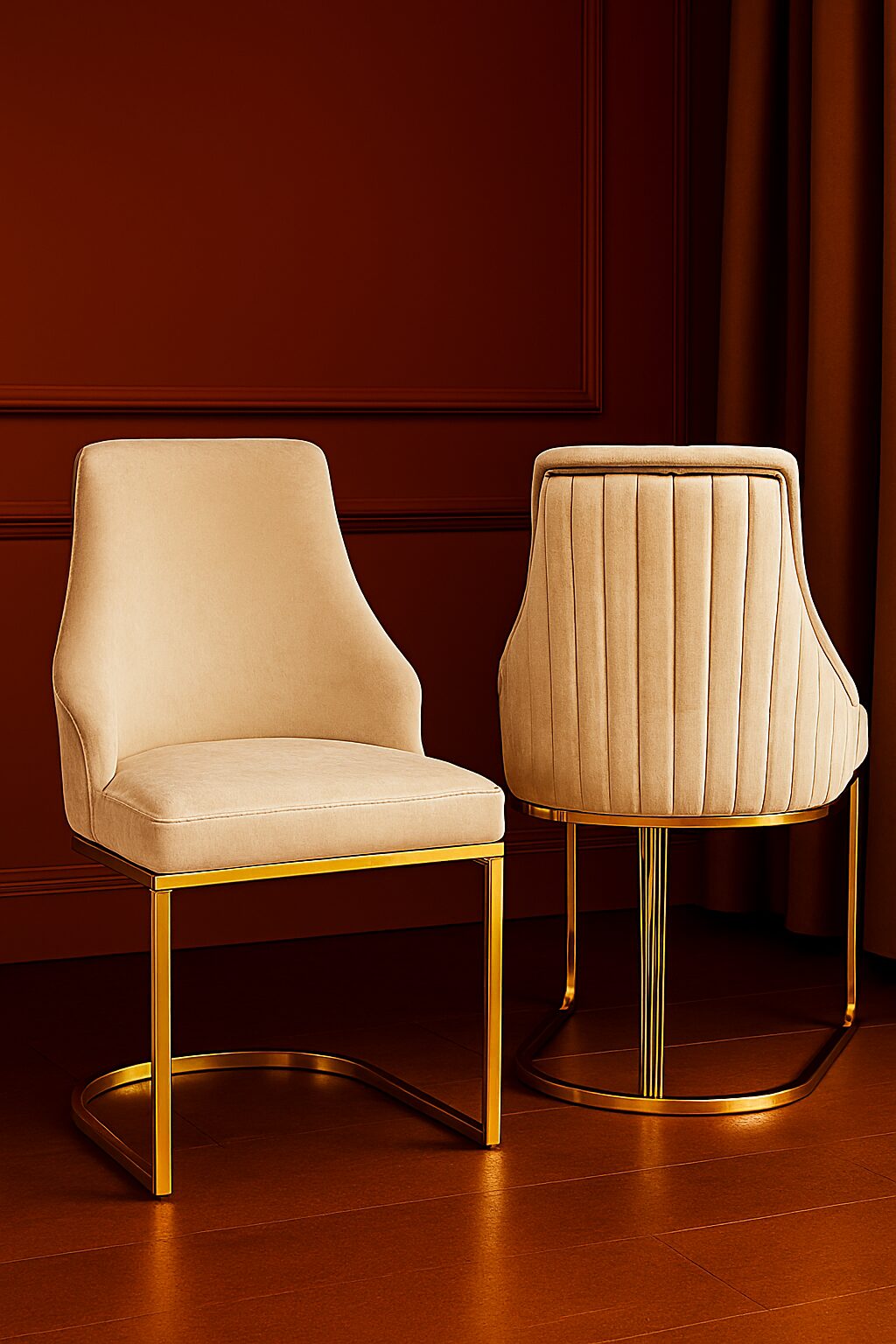 Our Chelmsford Velvet Dining Chairs are the epitome of modern design. Featuring a sleek and sturdy metal base and padded velvet seat that cradles you, this chair is perfect for dining spaces that make a statement. Note the vertical ribbed stitch design across the back elevating this chair further. The ultimate contemporary vibe.
